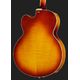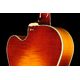 Der Sound ist wirklich umwerfend. Der auf der Decke montierte Humbucker liefert einen relativ klaren Sound und klingt nicht so verwaschen wie viele andere auf Archtop-Gitarren befestigten Tonabnehmer. Natürlich tragen die speziellen 12er Electrozinc-Roundwound-Saiten auch zum Klang bei. Die Gitarre wird aktuell über einen DV Jazz-Amp gespielt. Es ist schon erstaunlich wie klar und präzise der Klang der Gitarre ist, denn der benutzte Verstärker klingt naturgemäß etwas mittig-nasal und leicht dumpf. DIe Electrozinc-Saiten sind relativ neu auf dem Markt und haben einen ganz eigenen speziellen Klang. Natürlich kann man auch Flatwounds auf diese Gitarre aufziehen, dann ist man klanglich etwas eingeschränkter. Das ist eben Geschmackssache. Die Gitarre hat für ein komplett hohles Archtop-Modell relativ viel Sustain. Das Instrument ist recht schwer. Das wäre mein einziger Kritikpunkt. Nach dem Auspacken war ich mir nicht ganz sicher ob das Modell möglicherweise einen (kleinen) Sustainblock hat welcher zum hohen Gewicht beiträgt. Das ist aber nicht so. Offensichtlich wurde hier fünfschichtiges Laminat für die Decke verwendet. Das teilte mir ein Thomann-Mitarbeiter mit.