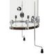DW PDP 25th Anniversary Acrylic 4pc; Shell Pack; Shell material: Acrylic; Finish: clear acrylic; maple hoops with outer ply walnut, hoops; Chrome hardware; True-Pitch tuning screws; STM mount; Stainless steel floor tom legs; Remo heads; Vintage-style claw hooks; Shell configuration: 22"x16" bass drum, 10"x07" Tom Tom, 12"x08" Tom Tom, 16"x16" floor tom; Delivery without stands / cymbals