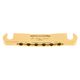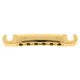 Gotoh GE101Z-T Stop Tailpiece G; GE101Z-T-G; Material: Zinc diecast ; Included: M8 (Metric) Height Adjustment Studs & Press In Bushings; Single String Spacing: 10,3 mm (0,41); Total String Spacing: 51,5 mm (2,03); Dimensions (W x D x H): 10 x 52 x 13 mm (4,02" x 0,71" x 0,5"); Post Spacing: 82 mm (3,23"); Finish: Gold; Made in Japan