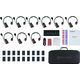 Hollyland Solidcom SE Pro 9S – Wireless intercom system; consisting of 1x master headset, 8x remote headsets; single-ear design; full duplex (FDX); dual-mic environmental noise cancellation (ENC) technology; DECT 6.0 support; transmission frequency: 1.9 GHz; Range: 400 m LOS; Frequency response: 150 Hz–7 kHz ±10 dB; Signal-to-noise ratio: 71 dB ±2 dB at 94 dB SPL; Active noise cancellation: =20 dB; RF sensitivity: <–90 dBm; Microphone type: electret; max. input SPL: >115 dB SPL; output SPL: 98 dB SPL; battery capacity: 770 mAh; charging time: <3 hours; weight (with battery): approx. 185.2 g; Colour: black; Scope of delivery: 1x Solidcom SE Pro master headset; 8x Solidcom SE Pro remote headsets; 18x Li-ion batteries; 1x 8-slot charging case; 1x USB-A to USB-C cable; 1x number sticker; 1x user manual; 1x warranty card