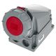 PCE 135-6 Wall Socket 63A 5-pin; CEE Wall Socket 63A – 5-pin, 6h, IP67; Technical specifications: Design: Surface-mounted; Current (IEC): 63 A; Number of poles: 5-pole (3P + N + PE); Rated voltage/frequency: 200/346 V~ to 240/415 V~ / 50 + 60 Hz; Identification color: Red (according to EN 60309-2); Protection class: IP67; Housing material: Heavy-duty PC/ABS; Contact material: Brass (CuZn) with CuBe lamellar contacts – for reduced insertion and withdrawal forces; Connection technology: Box terminals with screw connection; Housing: Rotatable 180° for flexible cable entry; Standard: EN 60309-2 compliant