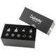 Sadowsky Onboard Bass Preamp MB4F, prewired onboard bass preamp for electric basses with 4-knob layout and mid boost switch, side jack and battery compartment, active preamp for passive pickups, 4 knob layout with controls for Master Volume / Balance / Vintage Tone Control (P/P) / Treble and Bass (stacked) / Mid Boost toggle, push/pull function at VTC knob for preamp bypass, incl. 0.1 µF replacement capacitor for the VTC module for improved treble roll-off when used with Sadowsky Soapbar pickups, longer cables between the potentiometers to facilitate installation in non-Sadowsky basses, screw terminals on the balance potentiometer for pickup hot & ground wires for solderless installation, without Control Plate, frequency response 5 Hz - 50 kHz, Bass control offers +18 dB boost at 40 Hz , Mid Boost switch offers +10.6 dB boost at 500 Hz, Treble control offers +18 dB boost at 4 kHz, total harmonic distortion (THD) 0.18% at 1 kHz, power supply via one 9V battery, current draw 9 mA, up to 870 hours battery life, input impedance 1 Mohm, output impedance 1 kohm