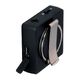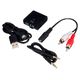 TIE Studio TBT-1; mobile Bluetooth transmitter/receiver for audio sources and headphones; transmits or receives audio signals via Bluetooth 4.1 aptX Low; 3.5 mm stereo jack audio input/output; Bluetooth profile A2DP and AVRCP; 10 metre distance from source possible;, Integrated, rechargeable Li-polymer battery 260 mAh; playback time: 6-8 hours; charging time: approx. 3 hours; belt clip for mobile use; USB micro charging socket; USB charging cable included; dimensions: 38 x 39 x 15 mm; weight: 0,12 kg
